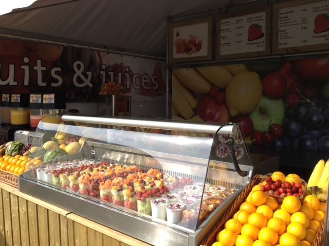Uw bezoekers iets gezonds bieden? Gezondheid wordt steeds belangrijker, wij kunnen uw bezoeker in de pauze een verfrissende gezonde fruitsnack, fruitsap of smoothie aanbieden. Als u bij ons de fruitstand huurt, zorgen wij dat het uw bezoekers aan niets ontbreekt. Wij kunnen in de korte pauzes á la minute de lekkerste smoothies, sappen bereiden, wat inhoud dat er geen vitamines verloren gaan, dus uw bezoeker geniet van een verse sap vol vitamines. Natuurlijk kunt u ook kiezen voor gezond met een chocolade ’bite’. Hierbij kunt u denken aan gechocolateerd fruit, zo geeft u de fruitstand een extra dimensie. Natuurlijk kunnen wij u ook een totaalconcept aanbieden, wij bespreken graag de mogelijkheden met u. Mocht u interesse en / of vragen hebben, wij staan u graag te woord.